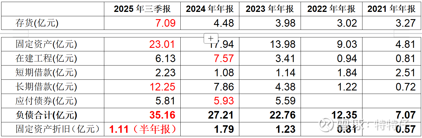 2021年公司刚上市的时候,固定资产仅4.81亿元,而到了25年三季度,公司的固定资产已经来到了23亿元,从绝对值来看,25年较24年增加了5个亿,25年固定资产折旧比24年起码增加4300万元。