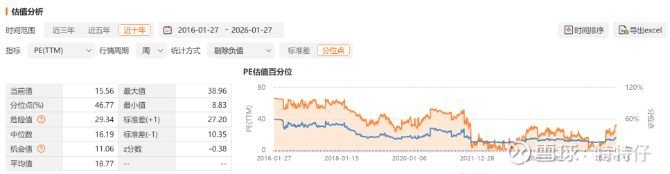 Pettm处于上市以来46.77%百分位,最低8.83倍,最高38.96倍,平均值18.77倍,中位数16.19倍。
