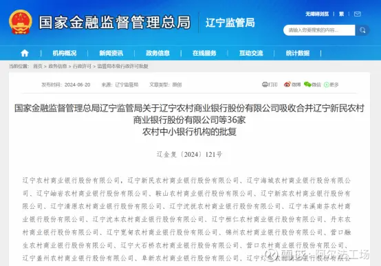 就在上个月,6月20日,辽宁农村商业银行获批吸收合并辽宁新民农村商业银行等36家农村中小银行机构。