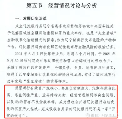 2023年,辽沈银行的年度财报毫不避讳地写道,由于吸收合并的两家银行(营口沿海银行、辽阳银行)存在息差倒挂严重、不良率高企的历史包袱,导致合并后的辽沈银行,还不是一家“正常的银行”。