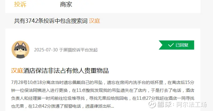黑猫投诉平台上,不少消费者反映的就是管理问题,如无入住提醒服务、取消订单不退款、遗失物品不作为等等。