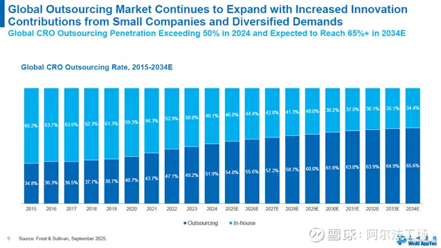 根据Frost & Sullivan数据,2024年,全球新药研发中CRO服务占比首次突破50%,预计到2034年将进一步升至65%以上。