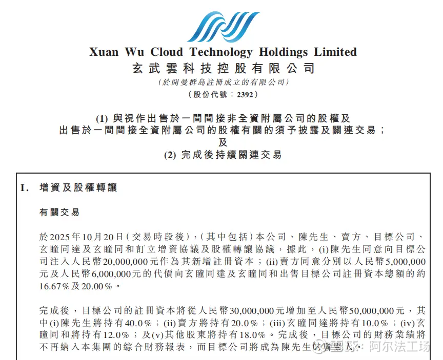 日前,国内知名AI+SaaS厂商$玄武云(02392)$ 发布了两则公告:公司拟通过转让20%股权引入战略投资人廉健。同时,公司现任董事会主席陈永辉将以增资方式,将原上市主体的销售云业务转为独立运营。