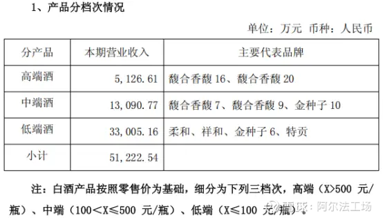 不难看出,在白酒产品中,以“馥合香”为代表品牌的中高端酒品,合计营收占比不足4成,且同比来看,这部分产品营收也缩水了17%。