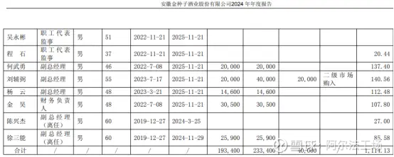 图注:金种子酒2024年董监高人员持股变动及报酬情况