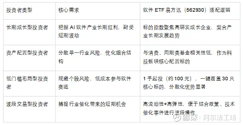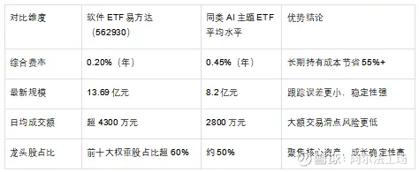 AI主题ETF品类繁多,软件ETF易方达(562930)的核心差异化优势需从“赛道纯度、流动性、成本”三维判断: