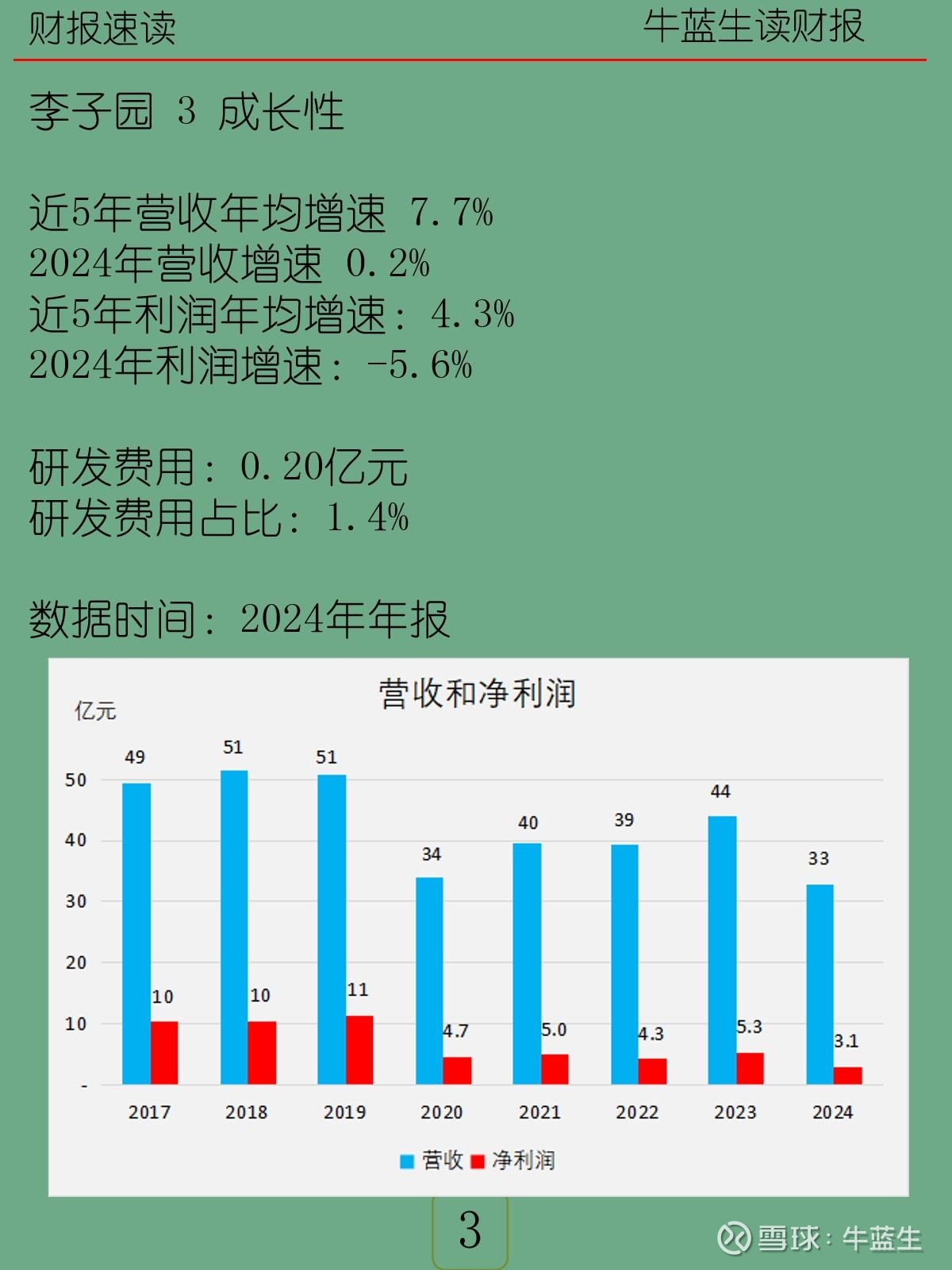 近5年营收年均复合增速7.7%,2024年营收增速0.2%;近5年净利润年均复合增速4.3%,2024年净利润增速-5.6%;研发费用0.20亿元,占营收1.4%。