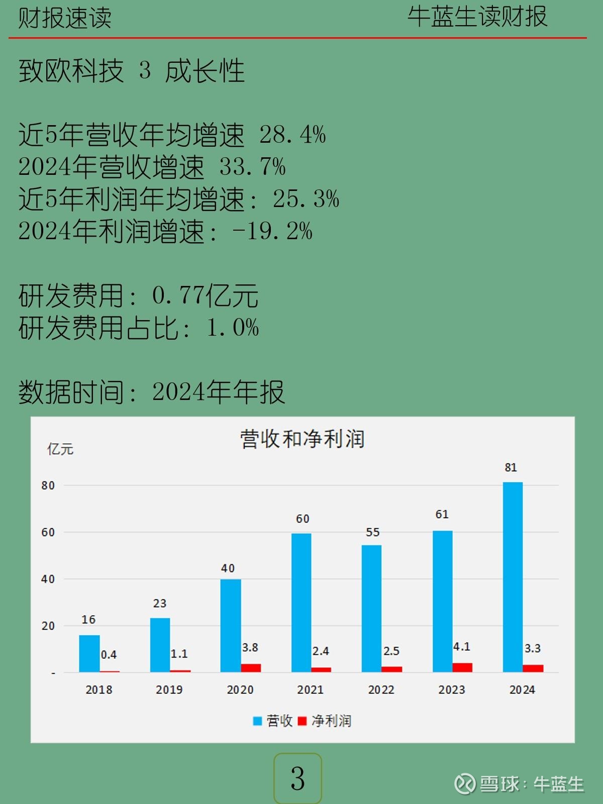 3. 成长性:近5年营收年均复合增速28.4%,2024年营收同比增长33.7%;近5年净利润年均复合增速25.3%,2024年净利润同比下降19.2%;研发费用0.77亿元,占营收1.0%。