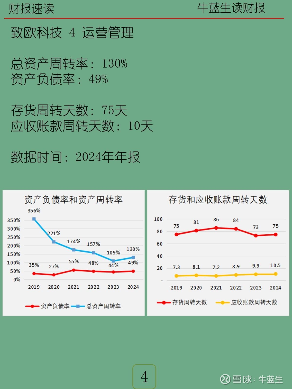 4. 运营管理:总资产周转率130%;资产负债率49%;存货周转天数75天;应收账款周转天数10天。