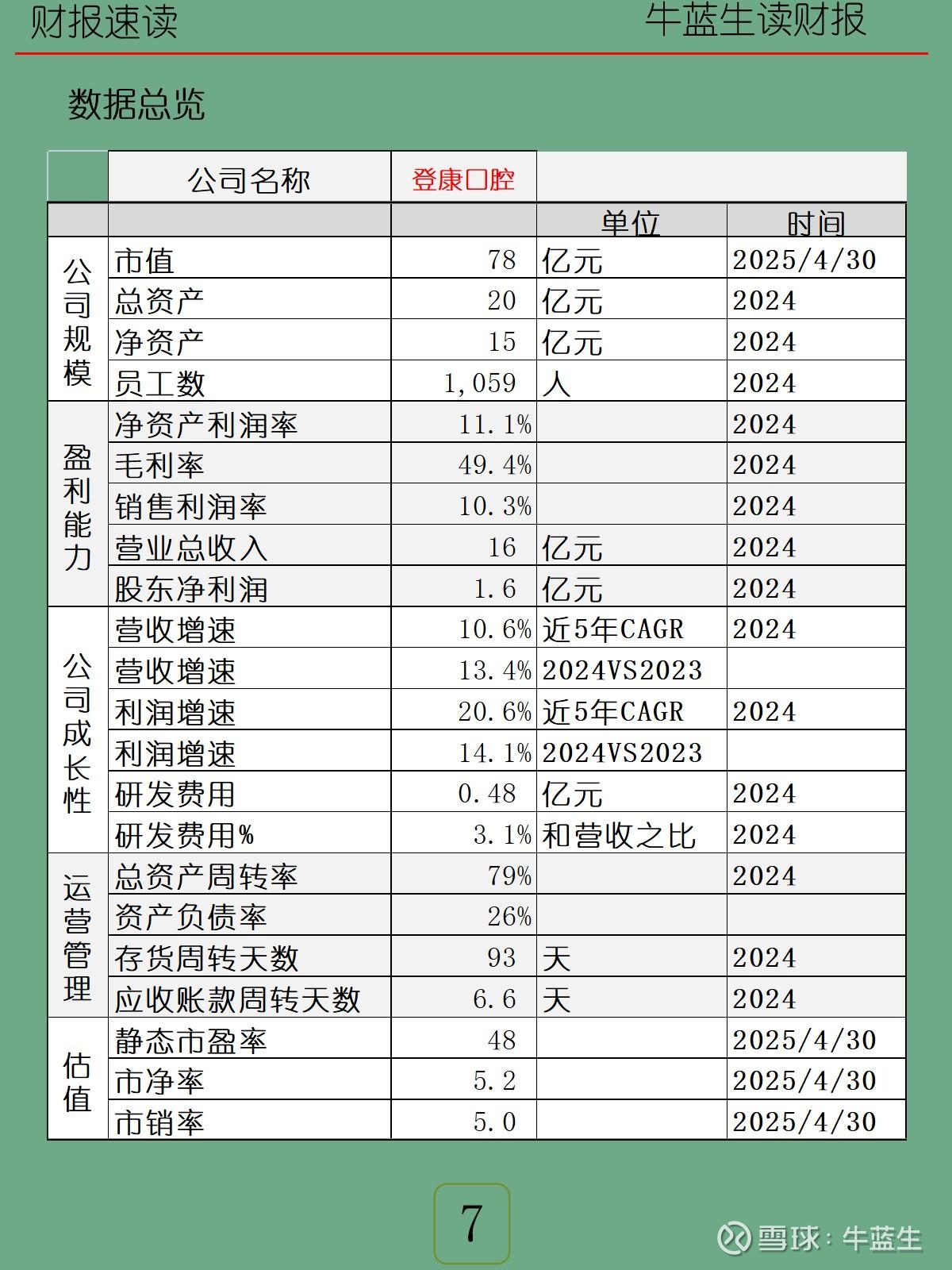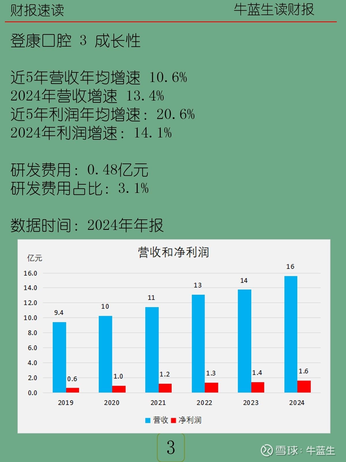 -成长性:近5年营收CAGR10.6%,2024年营收同比+13.4%;近5年利润CAGR20.6%,2024年利润同比+14.1%;研发费用0.48亿元,占3.1%。
