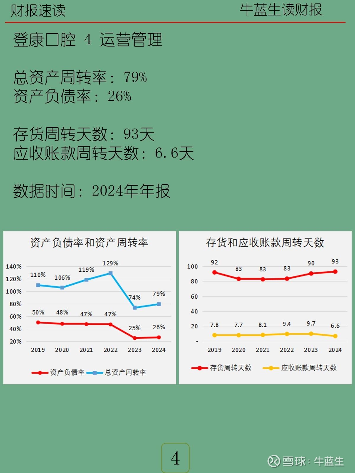 -运营管理:总资产周转率79%;资产负债率26%;存货周转93天;应收账款周转6.6天。