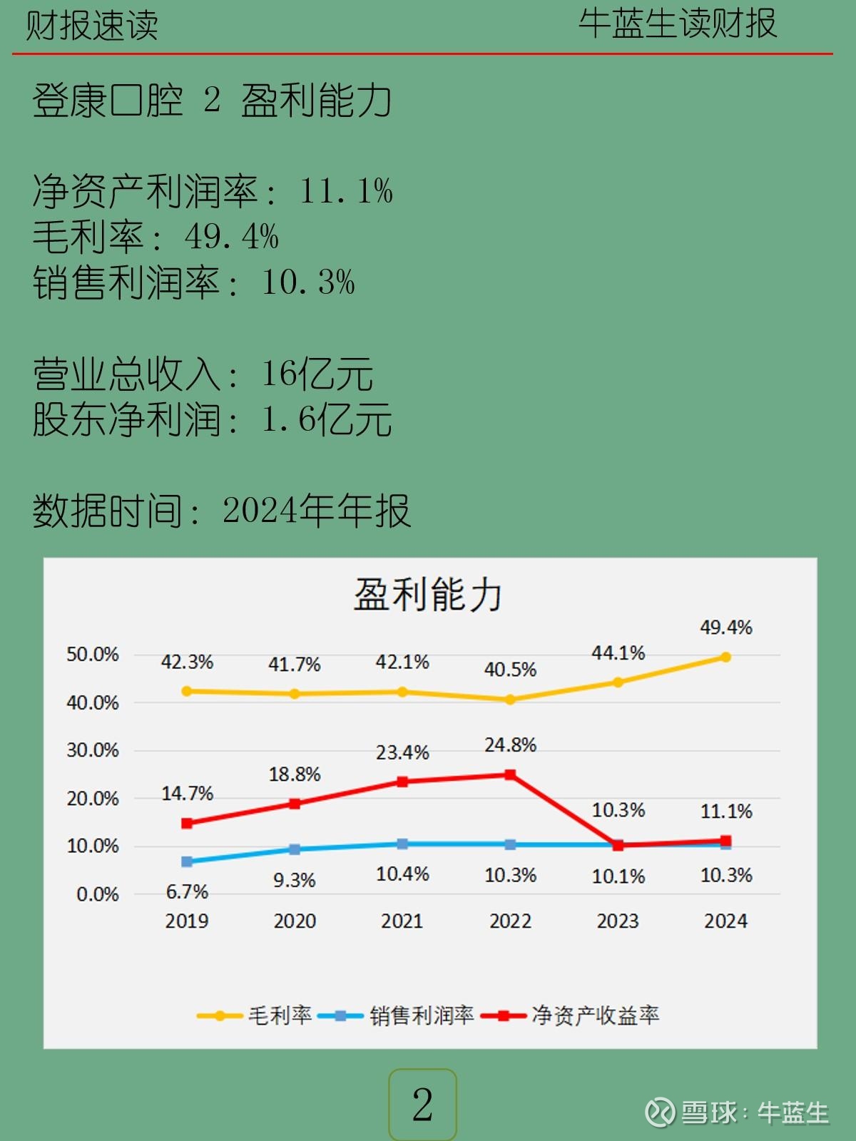 -盈利能力:营业收入16亿元;股东净利润1.6亿元;净资产利润率11.1%;毛利率49.4%;销售利润率10.3%。