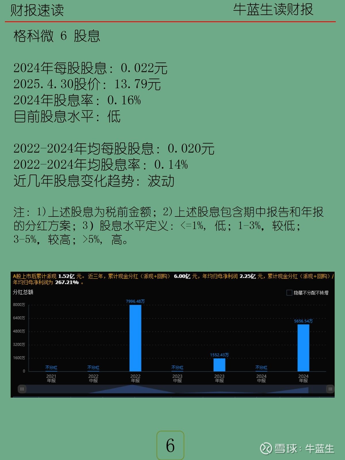 -股息:2024年每股派息0.022元,股息率0.16%,2022-2024年均每股股息0.020元,平均股息率0.14%,处于"低"水平