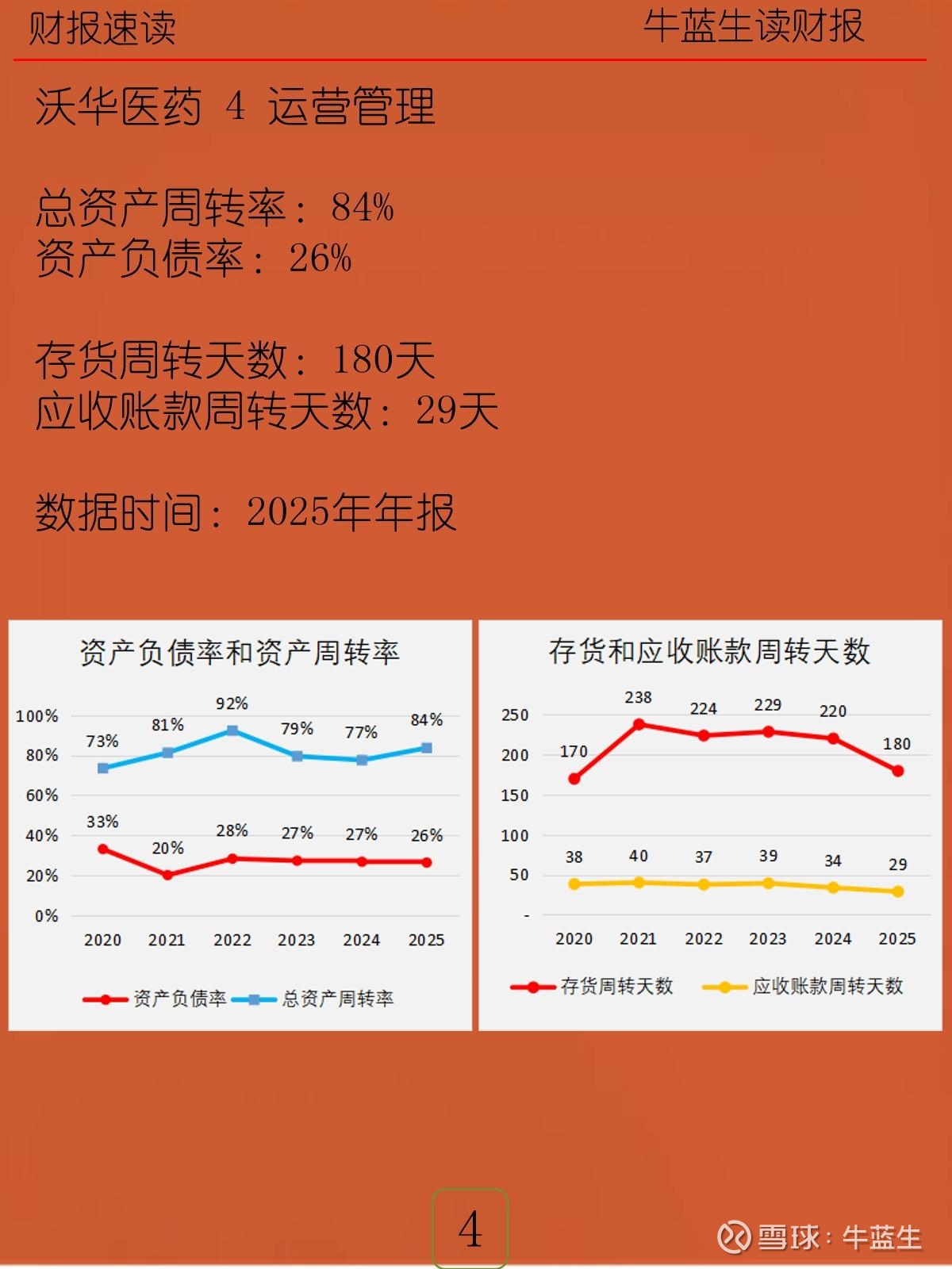 - 运营:总资产周转率84%,资产负债率26%;存货周转180天,应收账款周转29天