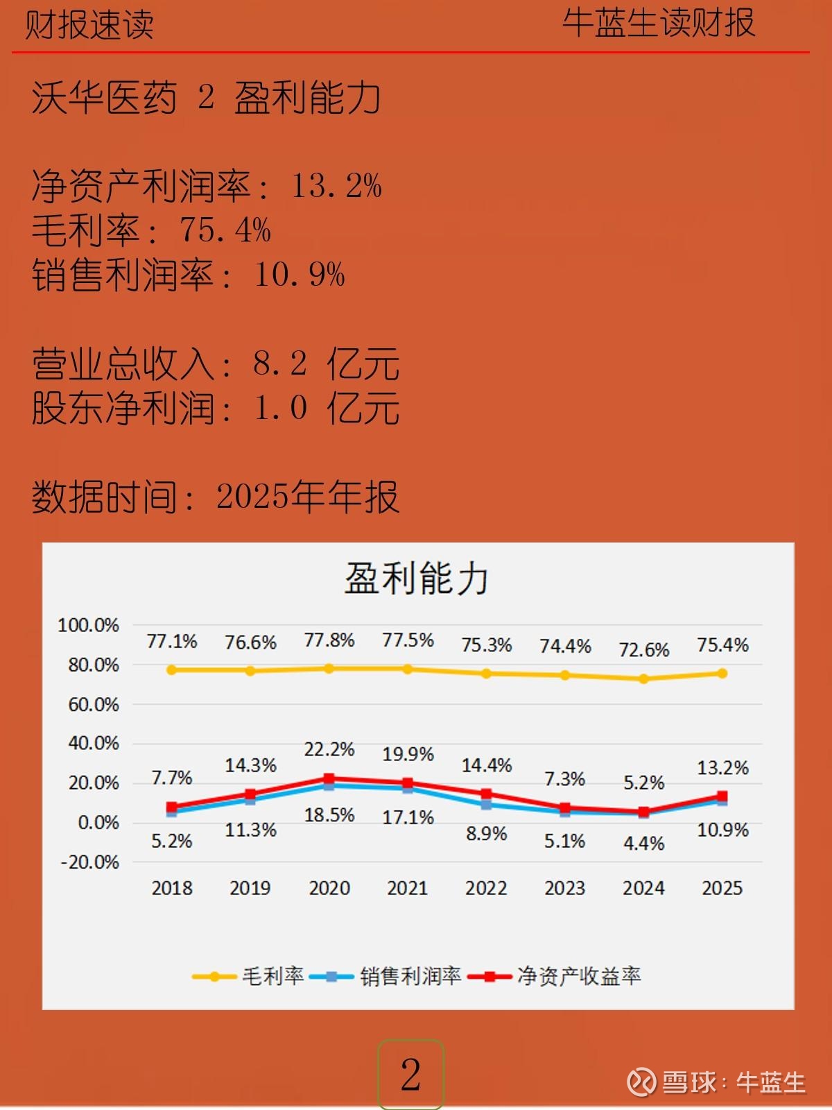 - 盈利:营业收入8.2亿元;归母净利1.0亿元;ROE 13.2%,毛利率75.4%,销售净利率10.9%