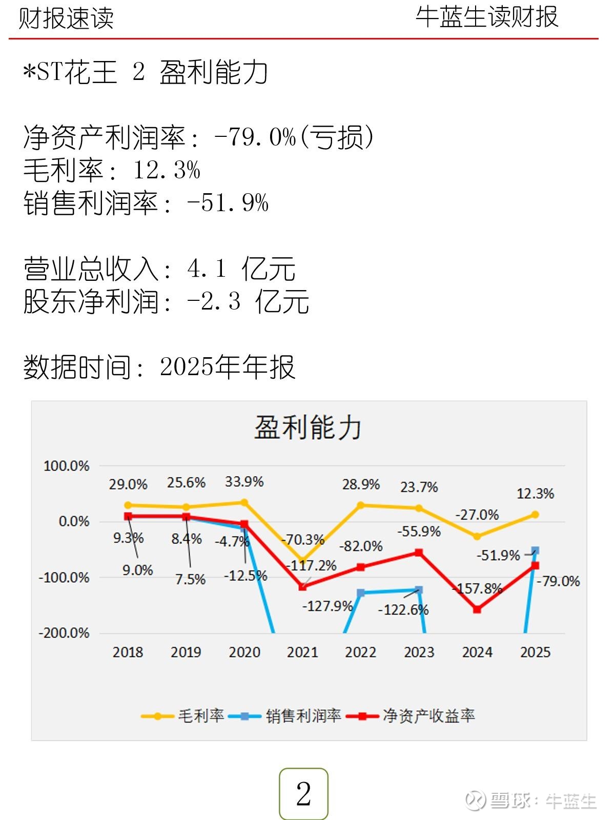 - 盈利:营业收入4.1亿元;归母净利-2.3亿元;ROE -79.0%(亏损),毛利率12.3%,销售净利率-51.9%