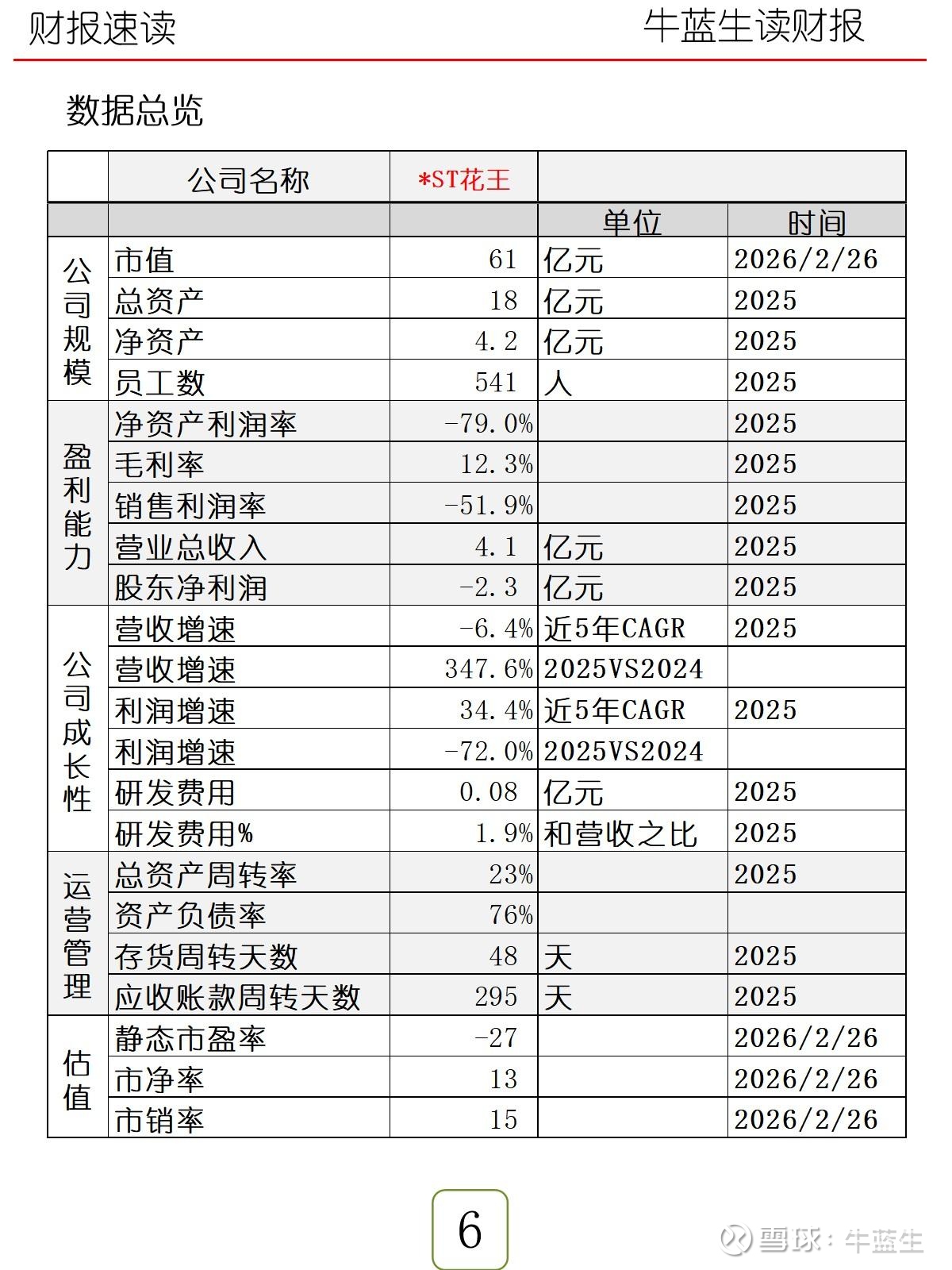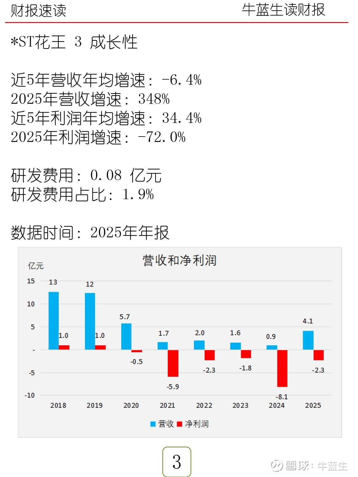 - 成长:近5年营收CAGR -6.4%,2025年同比+348%;近5年净利CAGR 34.4%,2025年净利-72.0%;研发费用0.08亿元,占营收1.9%
