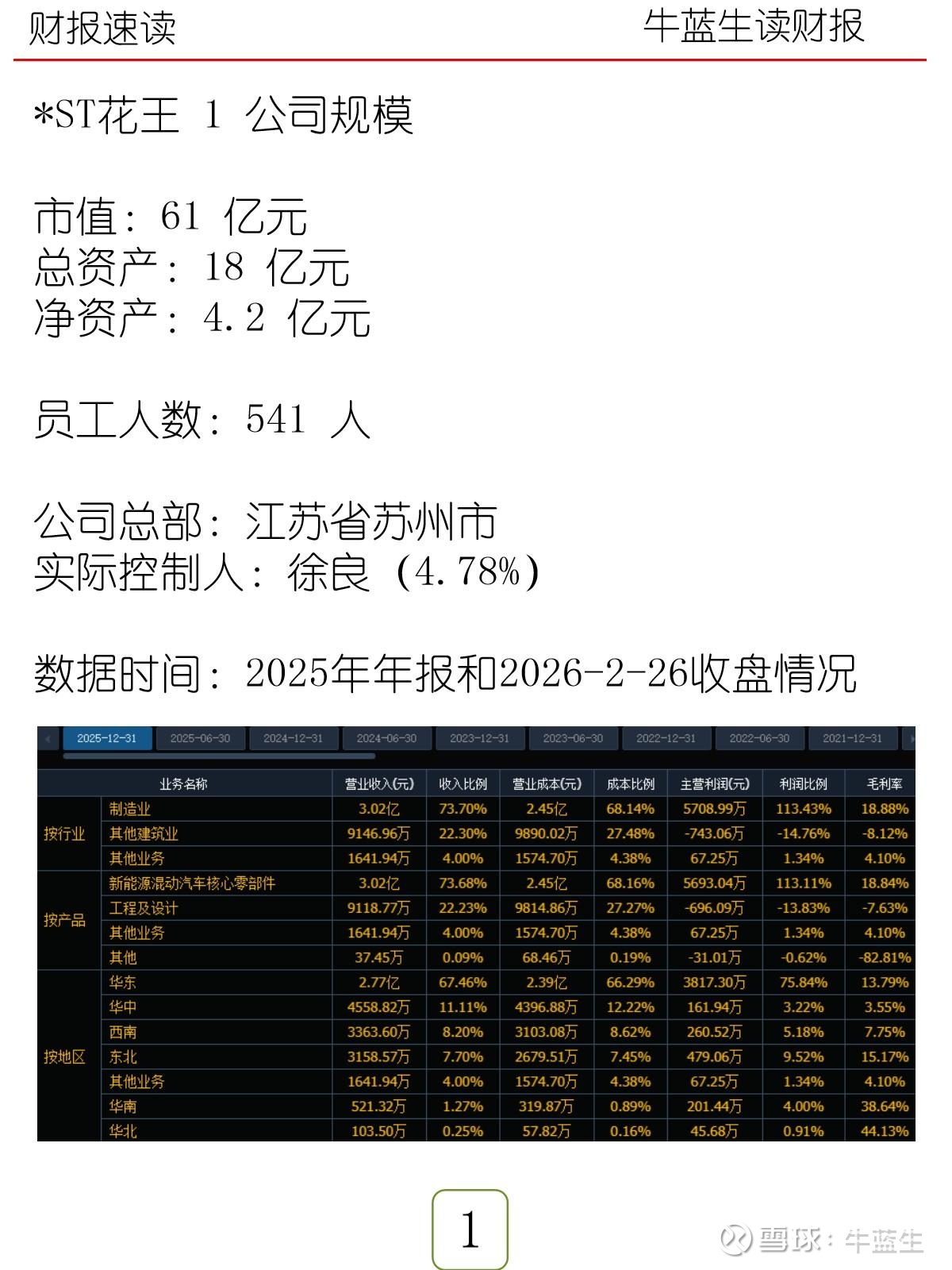*ST花王(现更名为丹阳顺景智能科技股份有限公司)总部位于江苏省苏州市,实际控制人徐良持股4.78%。公司现主营业务为新能源混动汽车核心零部件的研发、生产和销售。公司已完成战略转型,从传统园林景观业务转向新能源汽车零部件领域,致力于成为新能源汽车产业链中的重要供应商,为混动汽车提供关键零部件产品。