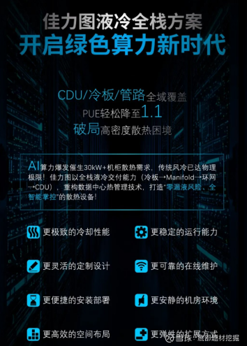 · 液冷系统(含浸没式):针对腾讯高功率数据中心(单柜≥20kW),佳力图的浸没式液冷技术已实现突破——通过将服务器完全浸入绝缘冷却液,散热效率比风冷高50%以上,且PUE可降至1.15以下,完美适配混元模型的高算力场景。