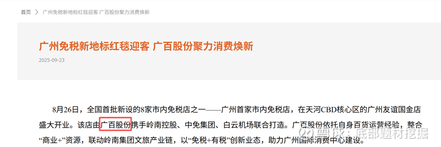 2025年8月26日,广州首家市内免税店(广州友谊国金店免税店)正式开业,由广百股份携手岭南控股、中免集团、白云机场联合打造,标志着公司正式切入高成长免税赛道。