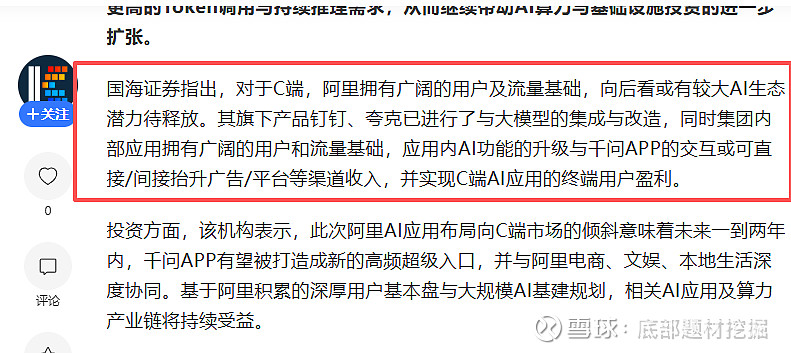 千问计划在未来几个月内逐步增加Agentic AI功能,支持在淘宝、天猫等平台上用自然语言购物。这种"对话即交易"的模式将重塑电商交互方式,使AI从辅助工具升级为交易主体。国海证券指出,阿里拥有广阔的用户及流量基础,应用内AI功能升级与千问APP的交互可直接/间接抬升广告/平台等渠道收入。