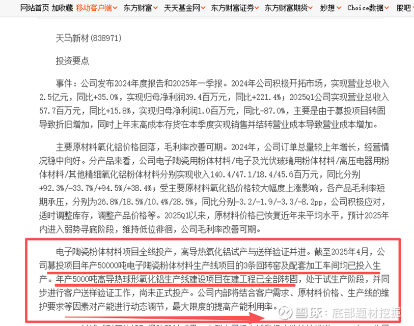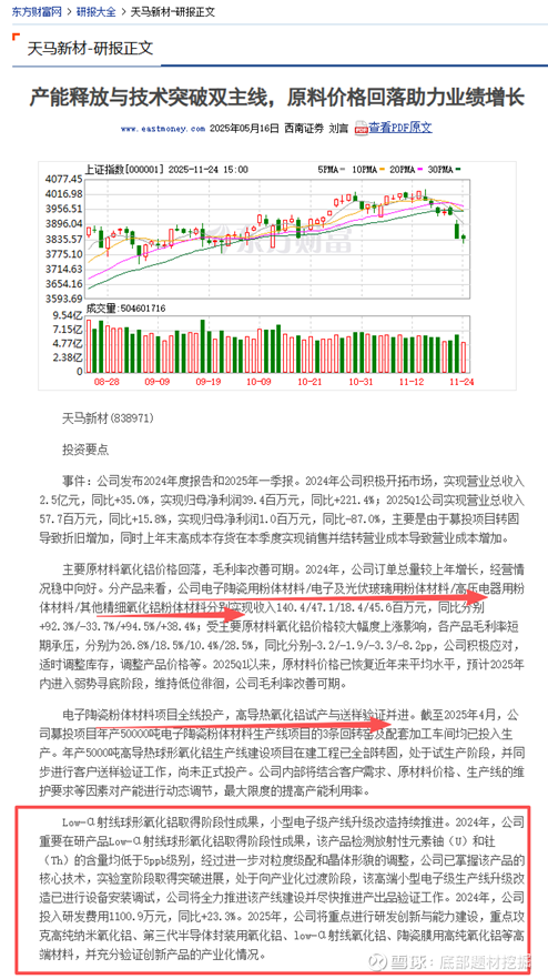 天马新材专注于精细氧化铝粉体材料,主要应用于电子陶瓷、光伏玻璃、高压电器等领域。公司自主研发的Low-α射线球形氧化铝已取得阶段性成果,该产品检测放射性元素铀(U)和钍(Th)的含量均低于5ppb级别,突破半导体材料壁垒。这一技术突破使公司成为半导体封装材料国产化的重要参与者。