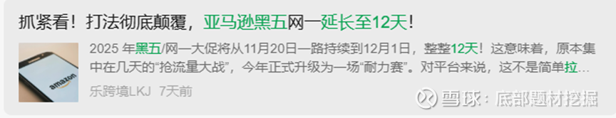 促销周期延长放大供应链韧性:亚马逊将黑五从5天拉长至12天,考验快速补货能力。中国卖家凭借产业带集群优势(浙江永康五金、义乌小商品)实现"7天上新-15天达海外仓"的极速响应,哈尔斯2025年上半年跨境电商收入同比增30%。