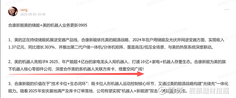 2、合康新能:运动控制核心供应商,深度绑定美的生态。 作为美的工业技术旗下核心企业,合康新能深耕伺服系统与运动控制技术,其高精度伺服系统与机电一体化解决方案是“美罗U”实现复杂作业的关键。公司已切入美的机器人供应链,将直接受益于新品量产带来的订单释放与业绩弹性。