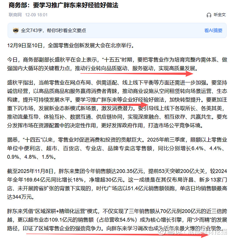 胖东来的模式,恰好是对症良药。其核心在于重塑以消费者体验为中心的商业本质,通过“高品质商品+极致服务+合理利润”构建长期信任。商务部此时号召学习推广,其深层逻辑在于: