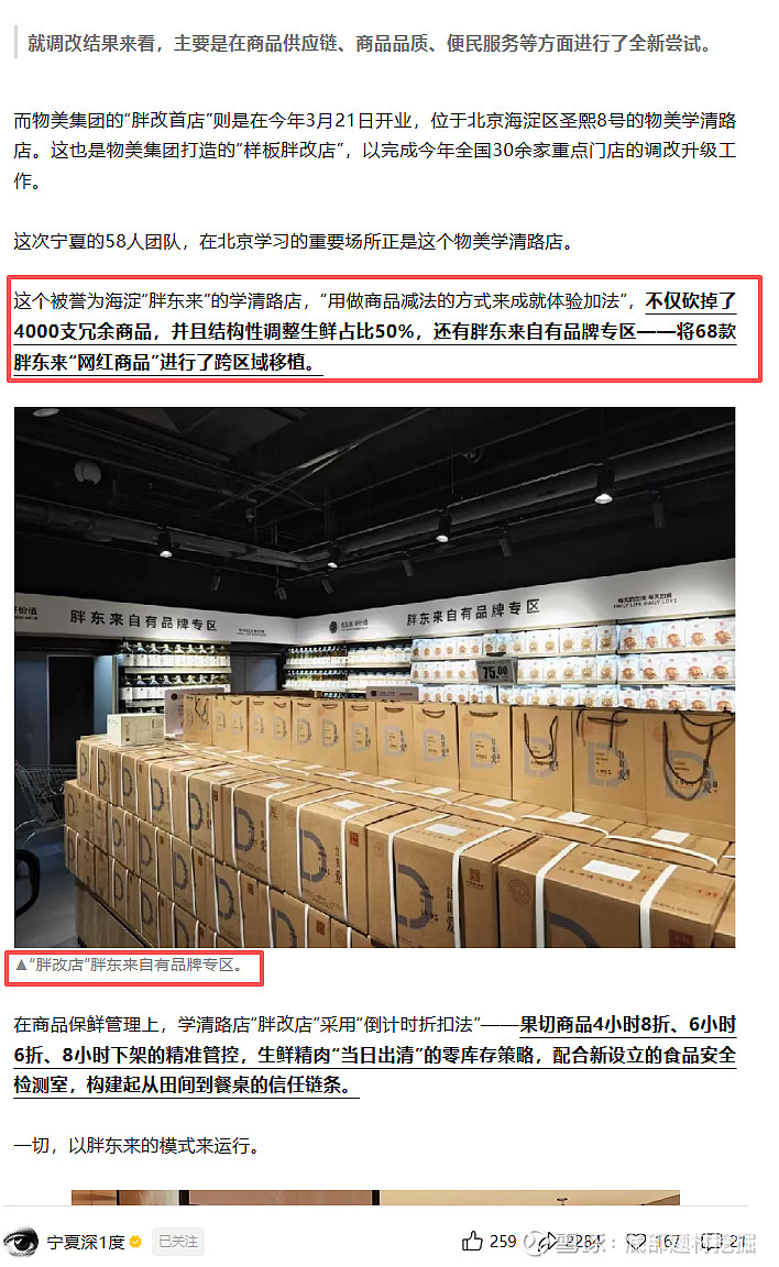 物美自身也在北京成功改造了多家“胖物美”门店,积累了丰富的调改经验。这种“前台学习胖东来,后台依托物美”的模式,确保了调改的可执行性和可持续性。