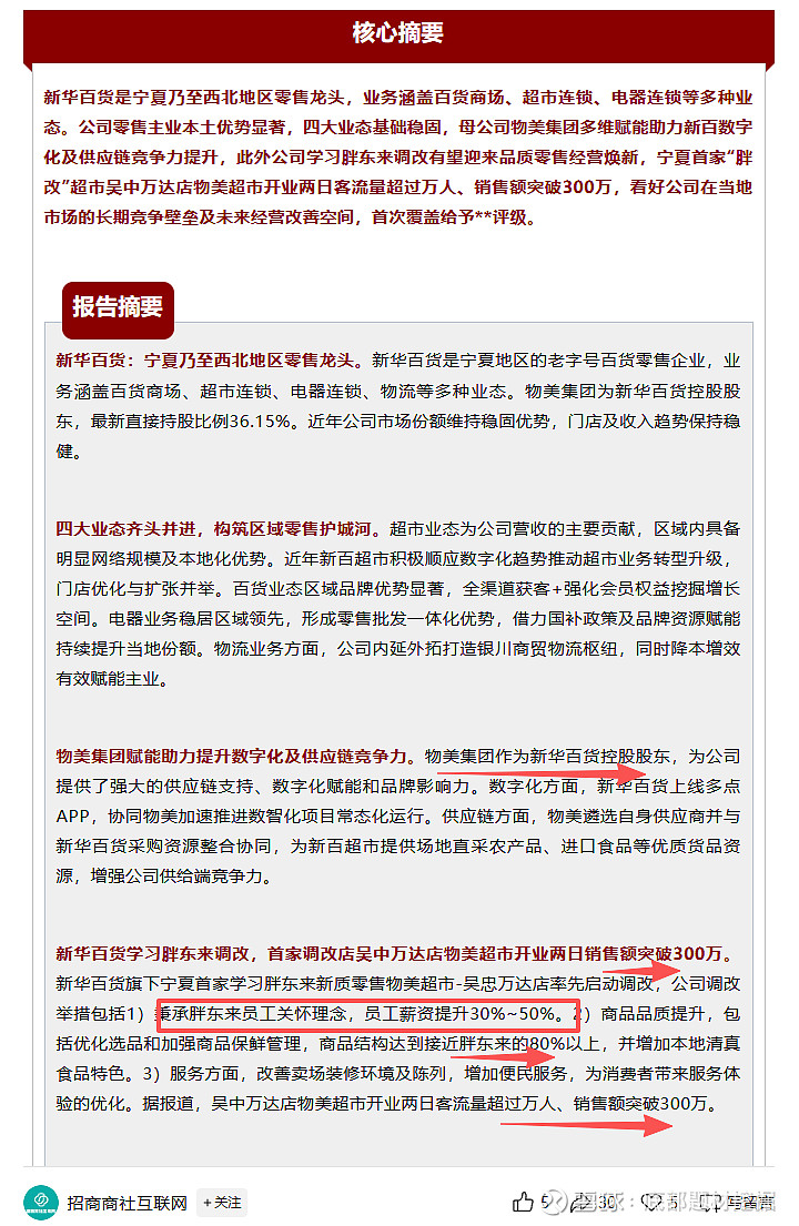 新华百货将员工薪资提升了30%-50%,