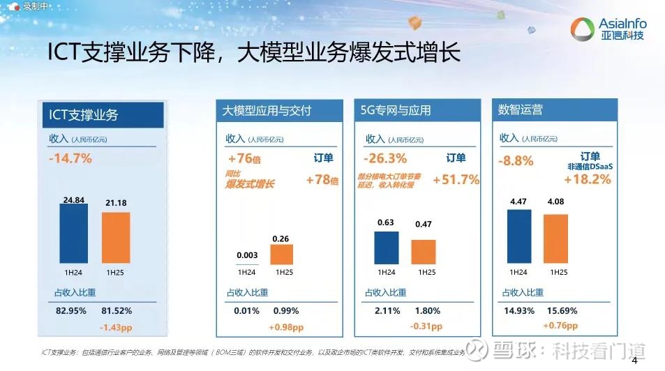 可以预计,像亚信科技这样的老牌传统行业ICT服务商,一方面持续夯实通信行业根基,推动ICT支撑业务基本盘稳步回升;另一方面持续聚焦AI大模型应用与交付、5G专网与应用、数智运营等新三大增长引擎,持续优化业务结构,加快签单节奏,全面推动产品体系向AI Native演进创新,不仅可以为公司三大增长引擎提供有力支撑,还可以为公司下半年业绩气温回升起到关键作用。不是吗?