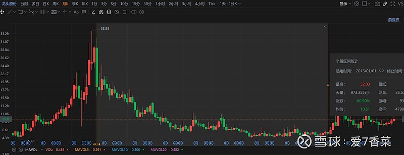 龙头股份2023.8月 5.5➡️18。5.5之前是从33一路下跌 连跌8年