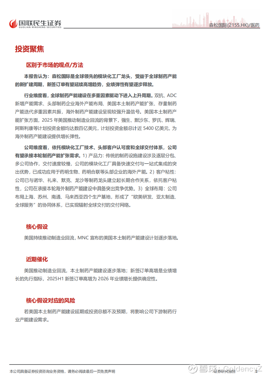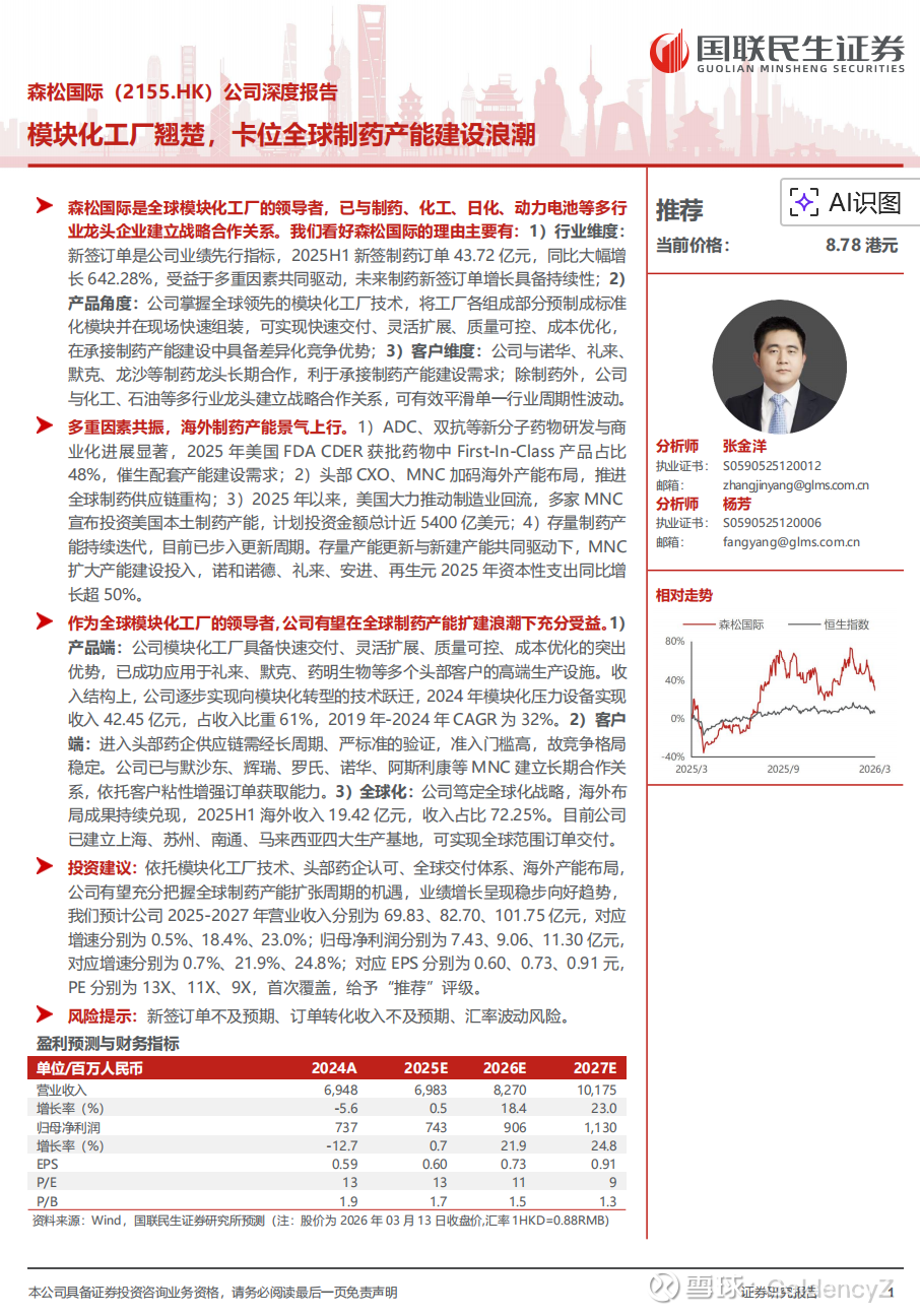 证券研究报告:《森松国际(2155.HK)公司深度报告:模块化工厂翘楚,卡位全球制药产能建设浪潮》