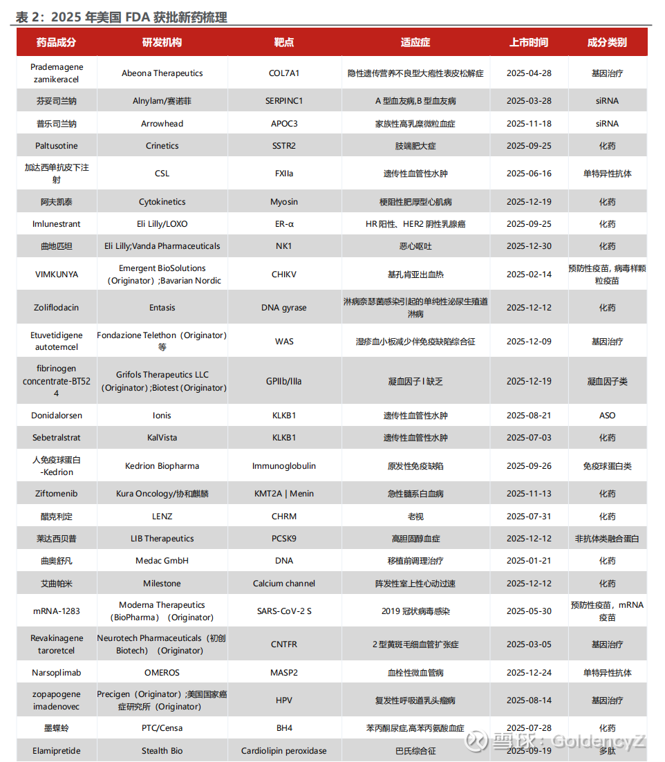新药快速迭代渐成常态,新药产能需求有望持续增长。根据医药魔方,美国FDA CDER在2025年合计批准46款新药产品,First-In-Class产品占比48%,药物类型涉及siRNA、ASO、ADC、双抗、多肽、非降解型分子胶、非抗体类融合蛋白等。随着新药推进商业化,生产需求逐步传导到制药上游,带动压力设备等需求增长。