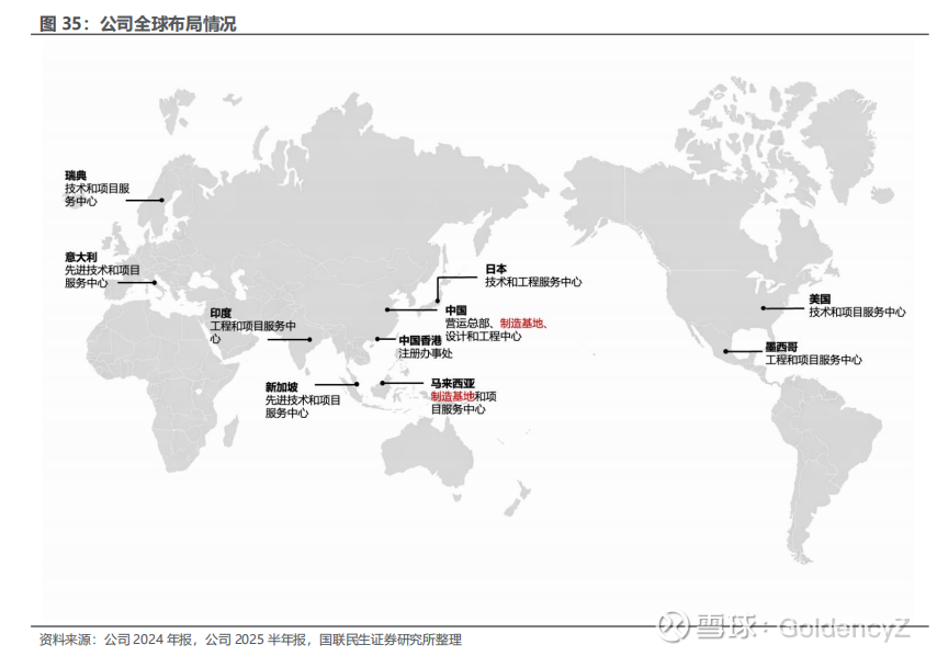 2)全球交付体系:欧美研发+亚太制造+全球服务,构建辐射全球的交付体系,深度服务各地客户。公司致力于打造具备全球经营视野与亚太制造优势的综合跨国企业,融合欧美研发资源与亚太本地化制造和服务能力,构建覆盖全球的解决方案与项目交付体系。公司目前已在中国、瑞典、意大利、美国、日本、印度、墨西哥、马来西亚、泰国、新加坡及中国香港等国家和地区设立附属公司及办事处,形成以中国、马来西亚双中心制造基地为核心、辐射全球市场的布局。通过将各地分支机构打造为集解决方案定制、售前售后技术支持及商务拓展于一体的平台,公司实现了“研发在欧美、制造在亚太、服务遍全球”的协同体系,持续增强跨区域响应能力,为客户提供高标准、可持续的工程建设与技术服务。