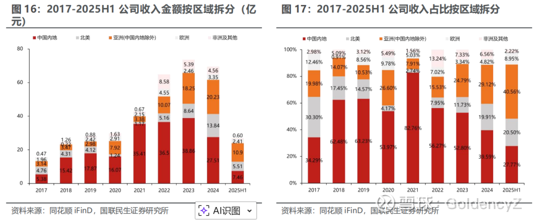 收入端:持续拓展海外业务,海外收入占比达到历史新高。公司深耕海外市场,近年来通过布局马来西亚生产基地、完善海外技术服务网络等措施,进一步提升全球交付能力,2024 年公司实现海外收入 41.98 亿元,2017 年-2024 年CAGR 为 22.18%。2025H1,公司实现国内收入、海外收入分别为 7.46 亿元、19.42 亿元,海外收入占比 72.25%,达到历史新高。