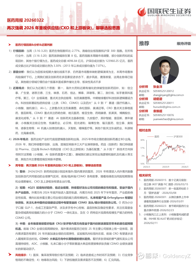 1再次强调2026年重视供应链(CXO和上游板块),聊聊选股思路