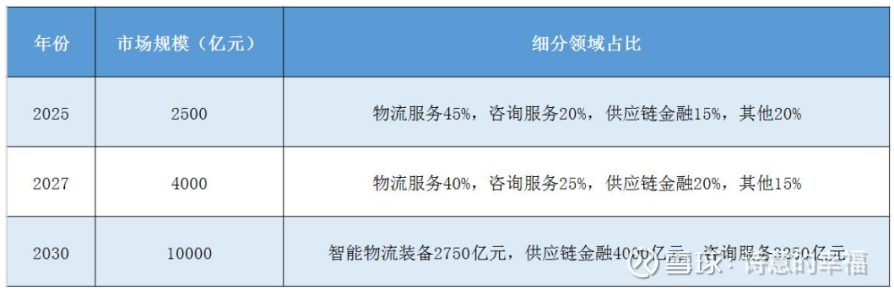 预计到 2030 年,中国供应链管理服务市场规模将突破1 万亿元,较 2024 年的 2500 亿元实现年均复合增长率超15%。细分领域中,工业供应链(受新能源汽车、高端装备制造拉动)增速超25%,消费供应链电商渗透率提升至45%,推动快消品供应链需求增长18%。