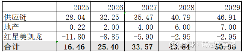 2025年半年为20.42亿,全年预计为40亿,未来几年,根据房地产市场的现状,个人拍脑壳毛估估计算如下(单位亿元):