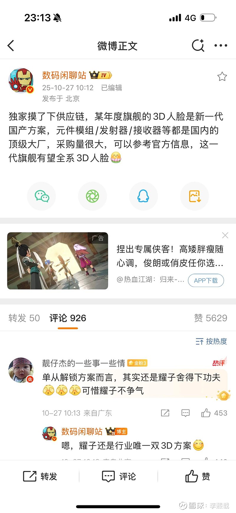 我认为二者都有可能,奥比中光的概率更高一些。汇顶科技我买因为看到大V有点含沙射影是可能重要零部件参与者。我个人认为这个博主还是挺权威的