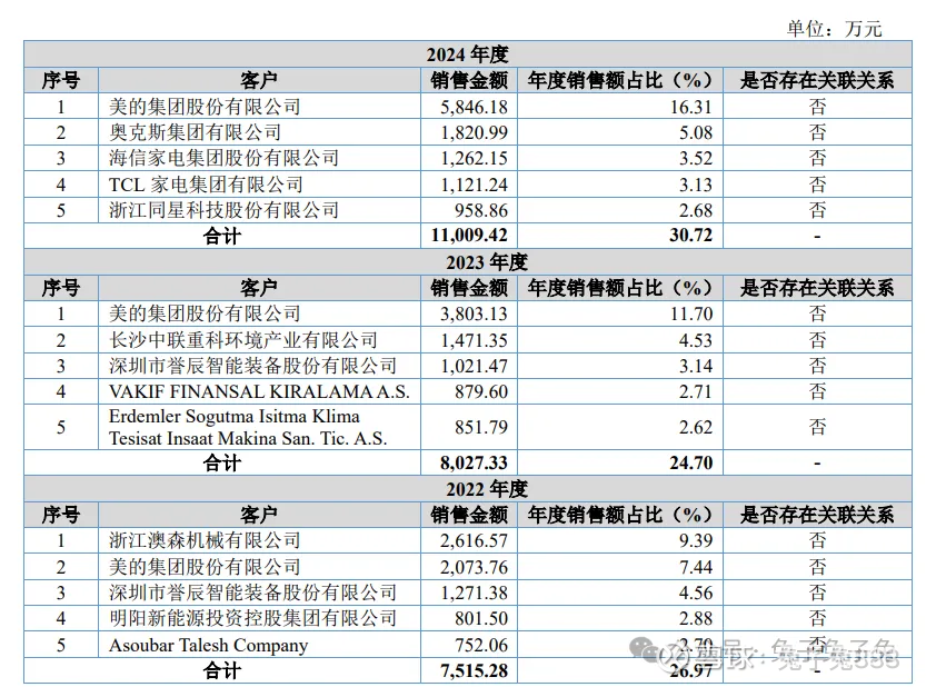 公司与国内外主要电器生产企业如格力电器、美的集团、奥克斯、海信家电、TCL 家电、四川长虹、大金空调、松下电器、江森自控、特灵、开利、富士通将军、三菱重工海尔等保持长期稳定合作关系。