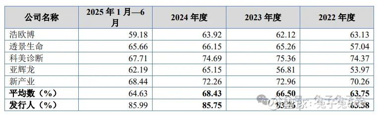 可比上市公司PETTM:浩欧博(286)、科美诊断(56.9)、 透景生命(246)、亚辉龙(59.8)、新产业(29.1)。