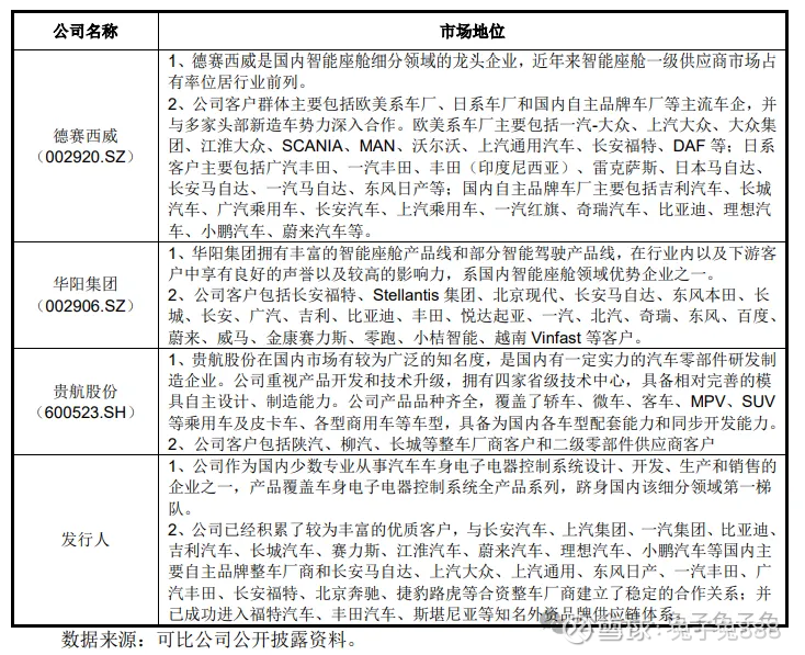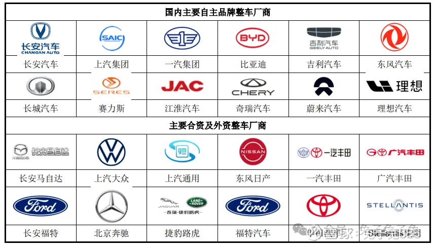公司与长安汽车、上汽集团、一汽集团、比亚迪、吉利汽车、长城汽车、赛力斯、江淮汽车、蔚来汽车、理想汽车等国内主要自主品牌整车厂商和广汽丰田、长安马自达、上汽大众、上汽通用、东风日产、一汽丰田、长安福特、北京奔驰、捷豹路虎等合资整车厂商建立了稳定的合作关系;并已成功进入福特汽车、丰田汽车、斯堪尼亚等知名外资品牌供应链体系。报告期内,公司积极布局新能源汽车领域,产品已经成熟应用于比亚迪仰望、王朝和海洋系列、AITO问界、上汽荣威、一汽红旗、深蓝、阿维塔等品牌多款新能源车型。