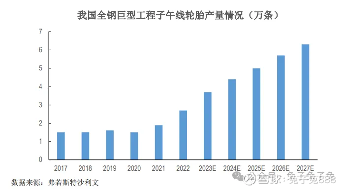 巨型全钢工程机械子午线轮胎是工程机械轮胎中极具特色的高端产品,其体积和质量巨大(最大轮胎外直径超过 4 米,最大质量接近 6 吨)、工作条件苛刻、不间断工作时间长,因此全钢巨胎产品的生产技术难度大,目前仅少数轮胎生产企业能够实现大规模量产。公司全钢巨胎产品逐步打破了国内全钢巨胎市场由国际三大品牌垄断的局面,实现了进口替代,推动了全钢巨胎的国产化进程,对保障和提升我国矿山供应链安全具有十分重要的意义。