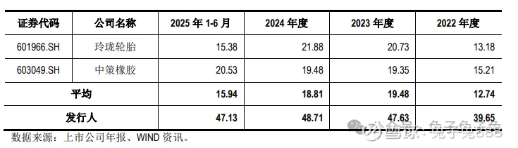 可比上市公司PETTM:赛轮轮胎(14)、三角轮胎(12.9)、风神股份(22)、青岛双星(负值)、玲轮轮胎(18)、中策橡胶(12)。