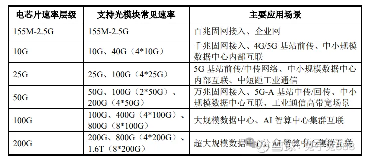 公司产品广泛应用于光模组(包括光收发组件、光模块和光终端)中,应用场景涵盖接入网、4G/5G/5G-A 无线网络、数据中心、城域网和骨干网等领域。