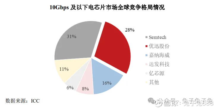 根 据 ICC 数据,2024 年度,公司在 10Gbps 及以下速率产品细分领域市场占有率位 居中国第一,世界第二。