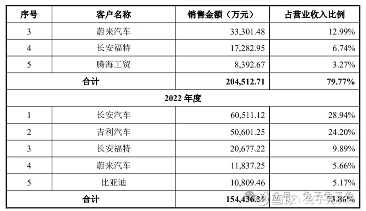 主要客户相对集中的风险: 2022 年度、2023 年度、2024 年度和 2025 年 1-6 月,公司向前五大客户的销售金额占当期营业收入的比例分别为 73.86%、79.77%、74.82%和68.00%,集中度较高。虽然公司与长安汽车、吉利汽车、长安福特、蔚来汽车、理想汽车、比亚迪等知名整车厂商和宁德时代、英纳法和伟巴斯特等知名零部件供应商建立了较为稳定的合作关系,但若未来公司合作的整车厂新能源战略转型不达预期、经营情况恶化或与公司的合作关系发生重大不利变化,则会对公司经营和财务状况造成重大不利影响。