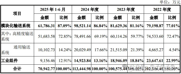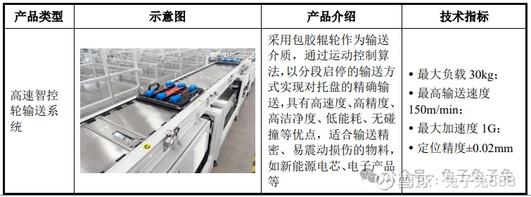 公司主营模块化输送系统和工业组件,产品主要应用于新能源电池和汽车零部件领域。